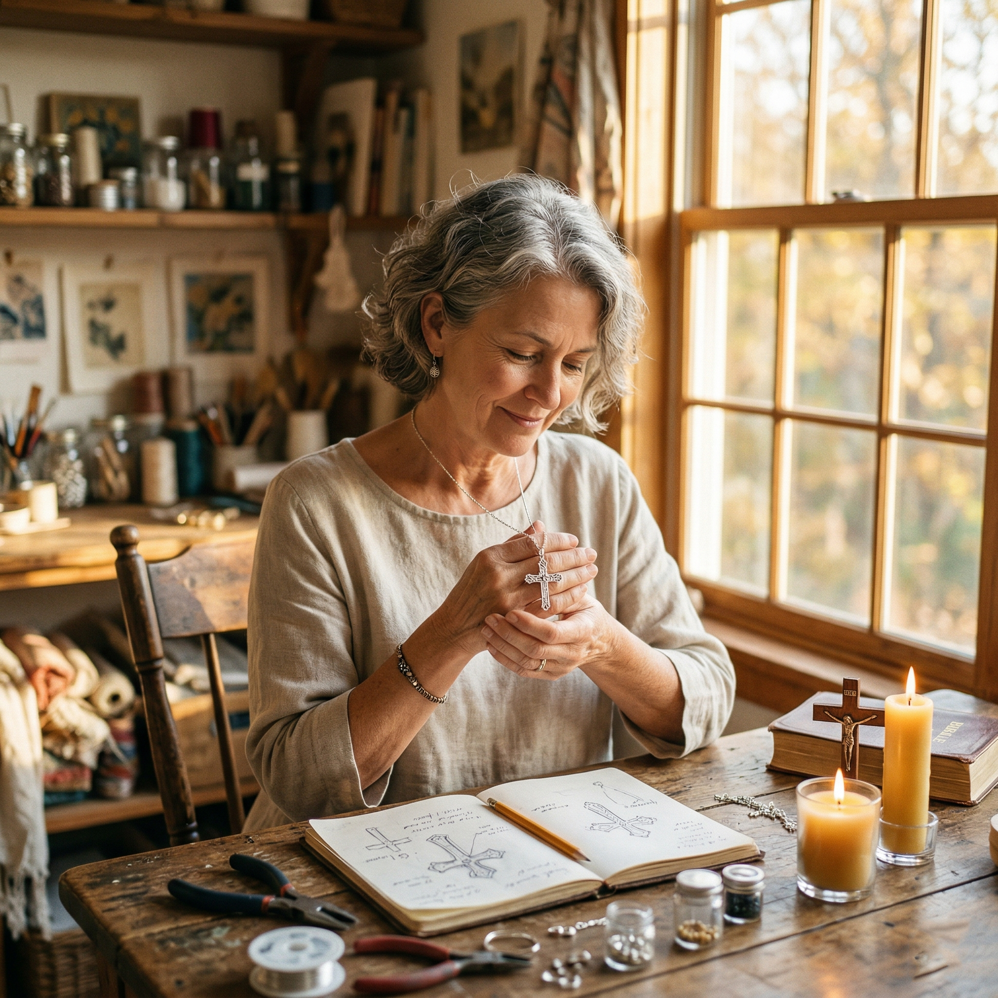 I was frustrated with what existed. Most Christian jewelry felt outdated or mass-produced. I wanted something luminous, something that felt like morning light through stained glass, something you'd pass down to your daughter. So I taught myself silversmithing, studied the history of Christian symbolism, and began sketching in prayer.